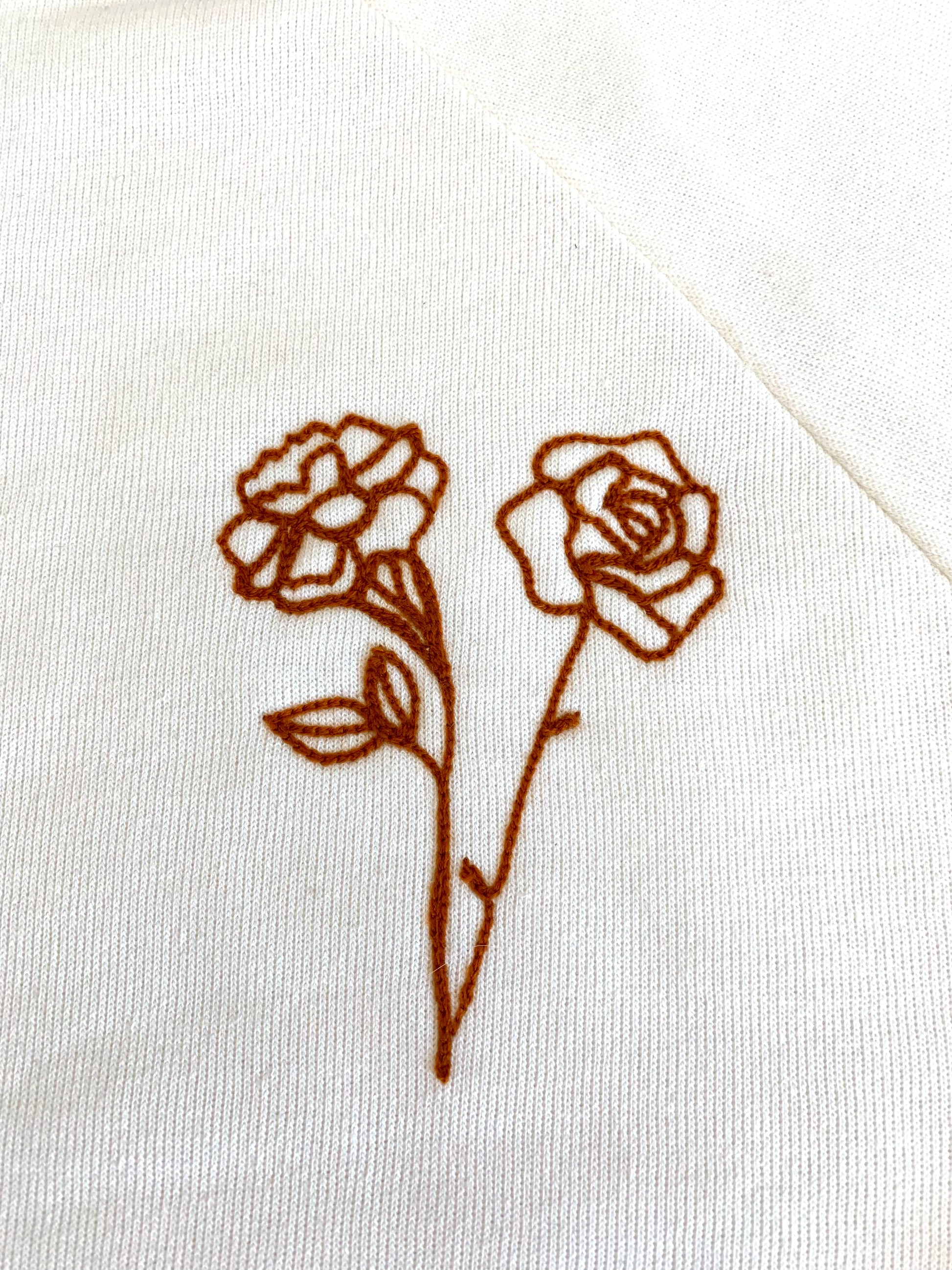 I was delighted with how this turned out. The sweatshirt is the *perfect* crop, not too short and not too long. It's a nice light-weight material and perfect for spring and summer. The rose embroidery turned out so lovely. I she ever offers these in other colors of sweatshirt, I will buy another one immediately.