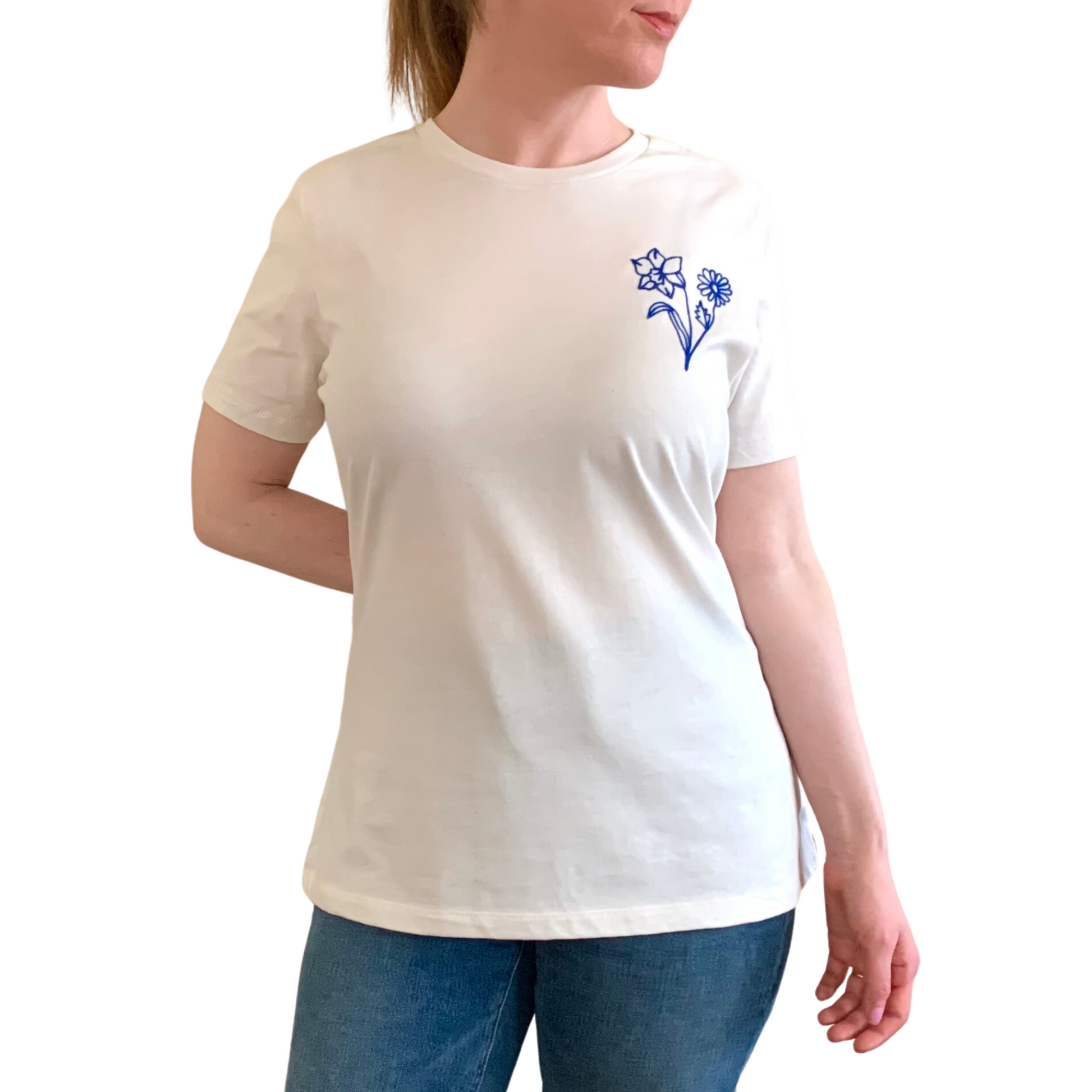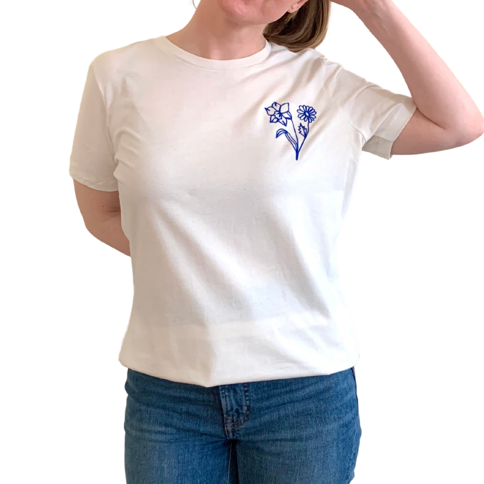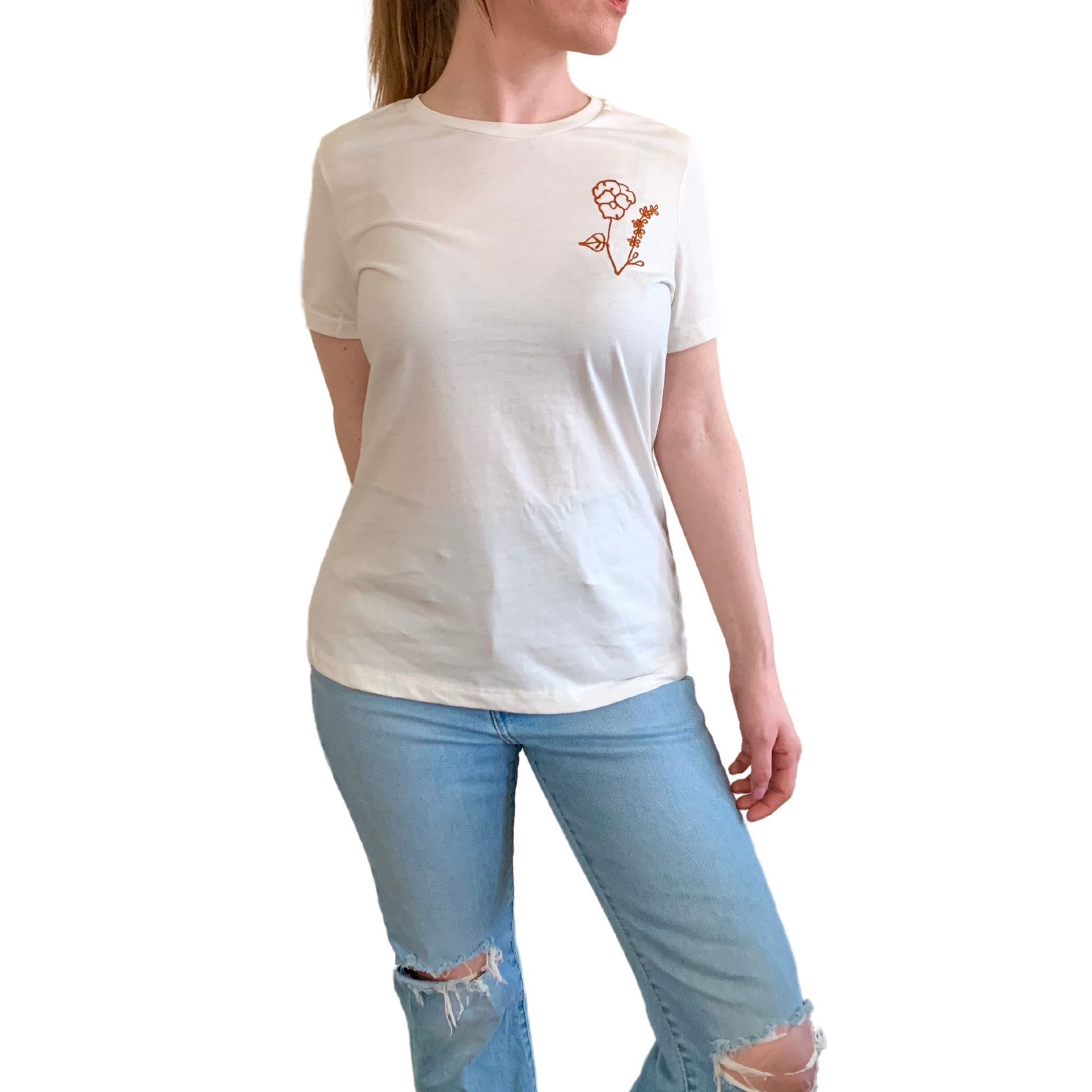 Customize this classic cream t-shirt with your birth flower. Choose 1 flower or pick a bouquet of 2 or 3 flowers representing the birth months of those you love.