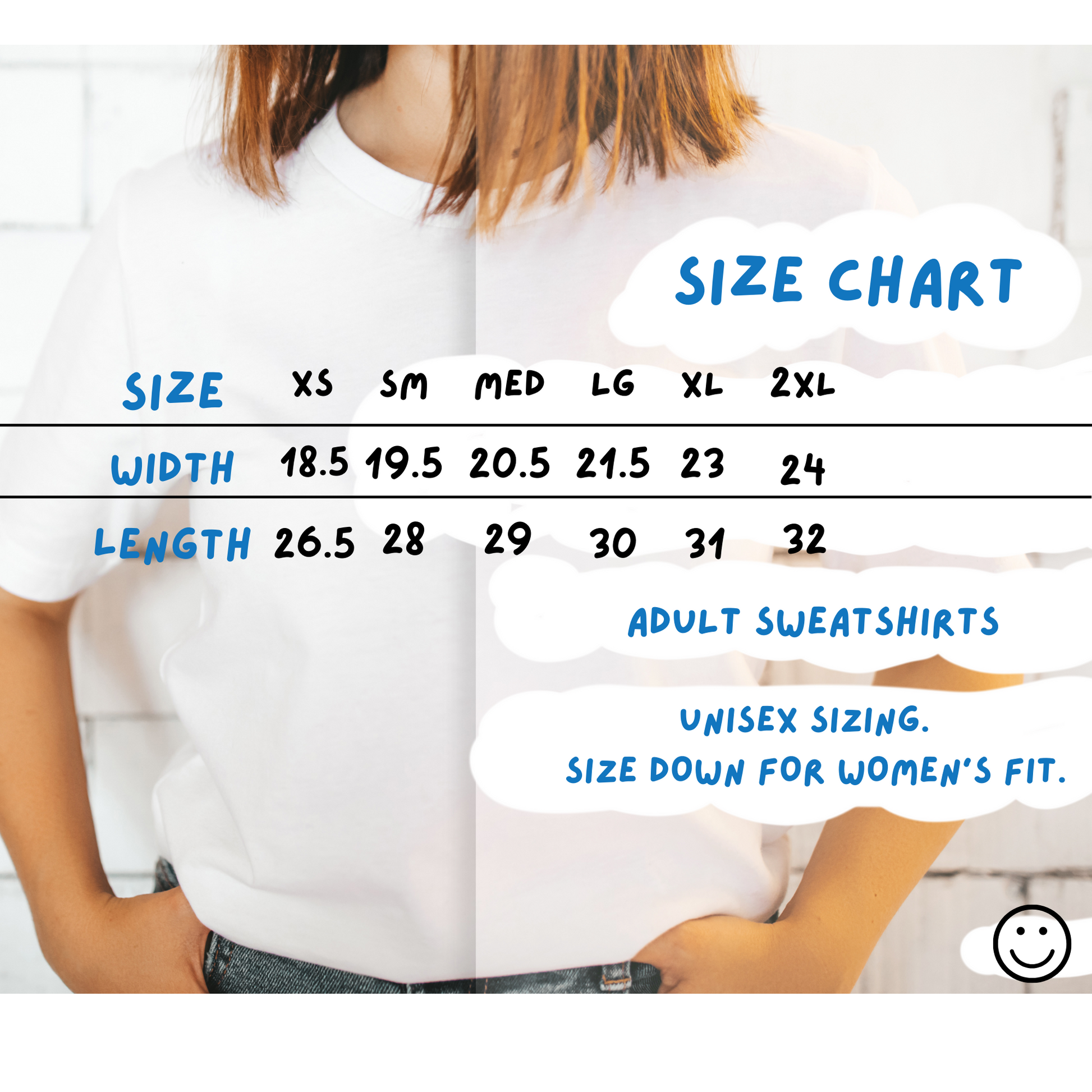 • Sweatshirts are unisex and run true to size for men's sizing.