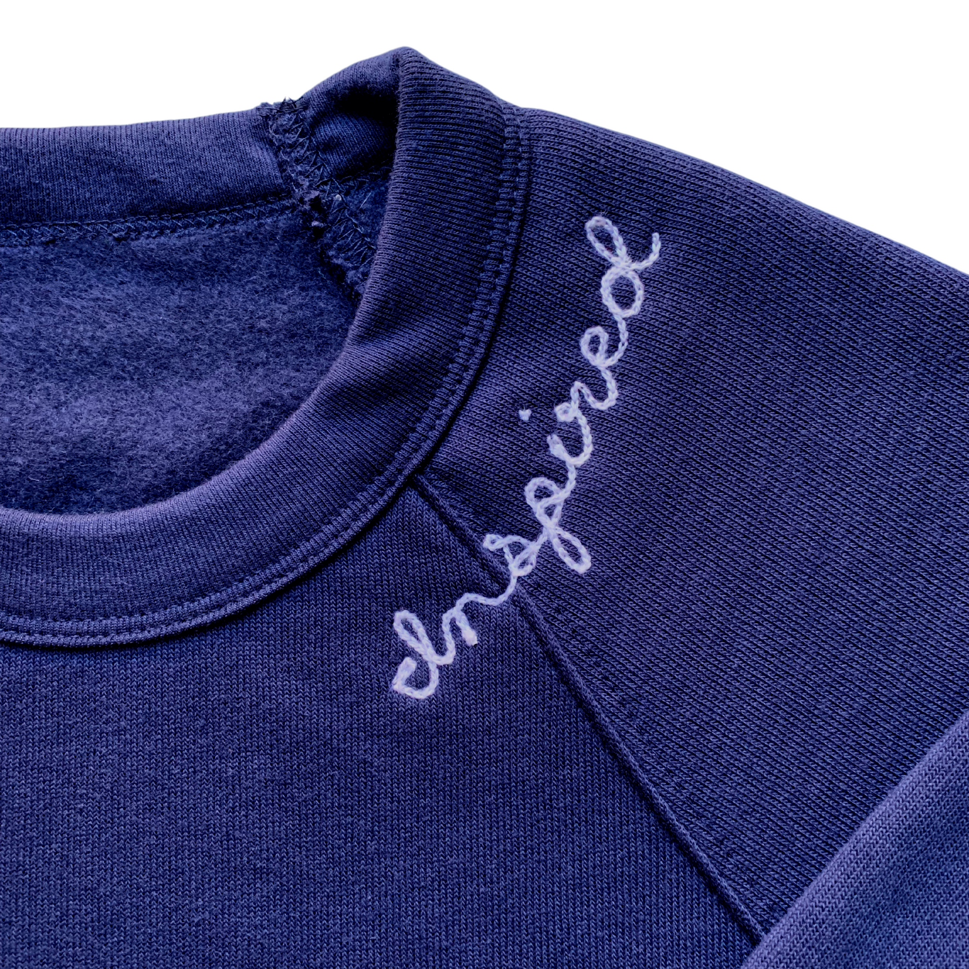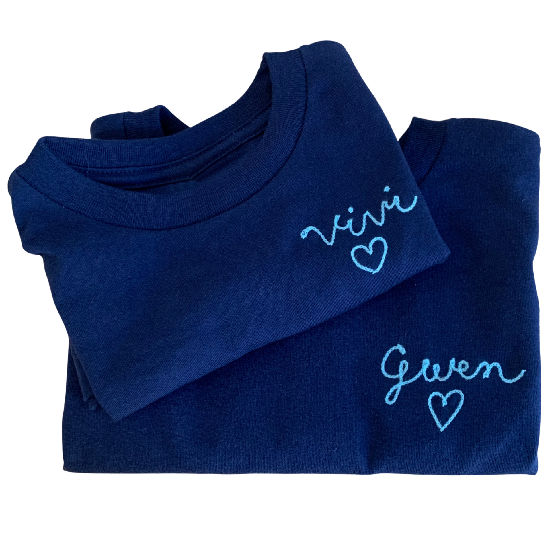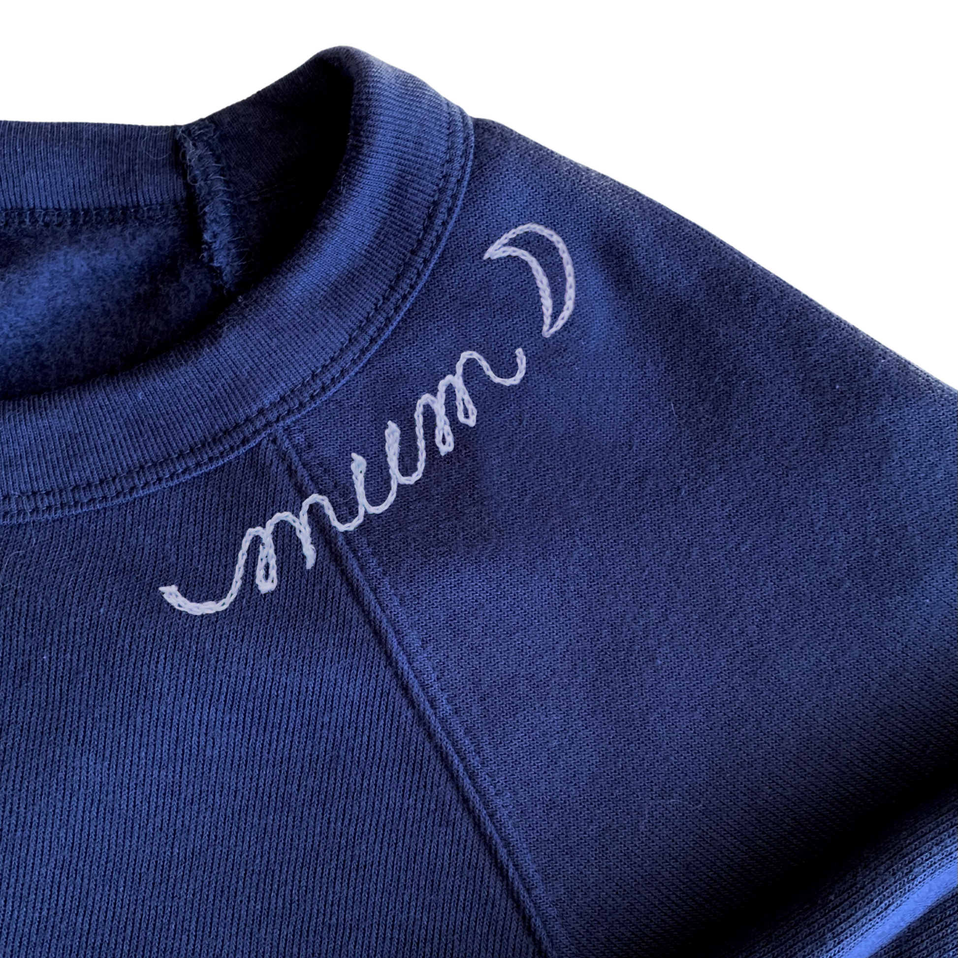 Our best selling sweatshirt in navy, personalized just for you! Made of super comfy ringspun cotton with your choice of vintage-style chainstitch lettering.
