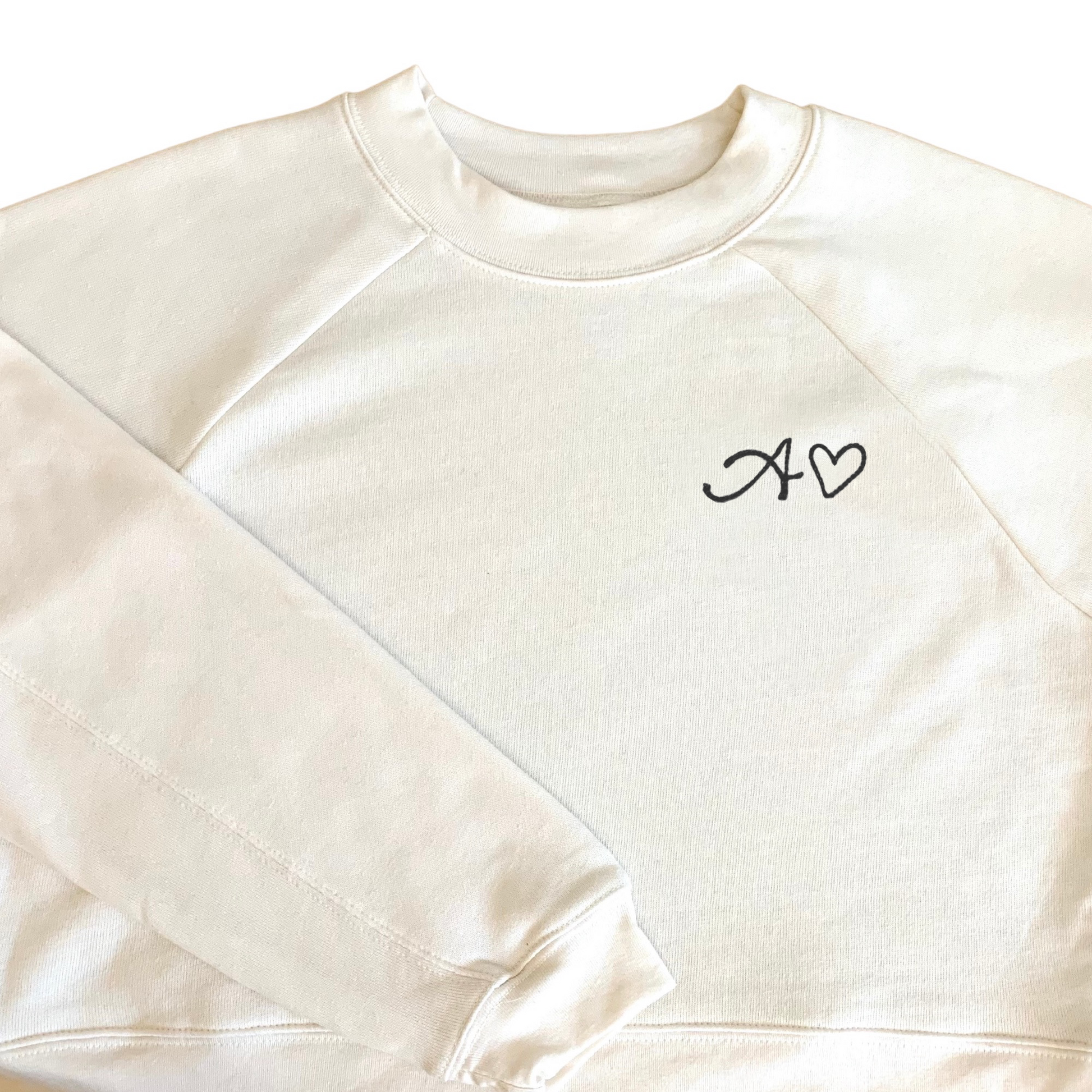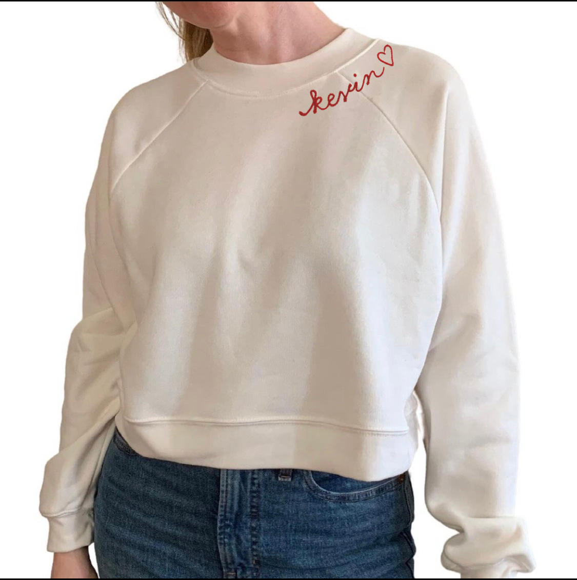 A perfectly cropped women's sweatshirt made of super comfy ringspun cotton with your choice of vintage-style chainstitch lettering.