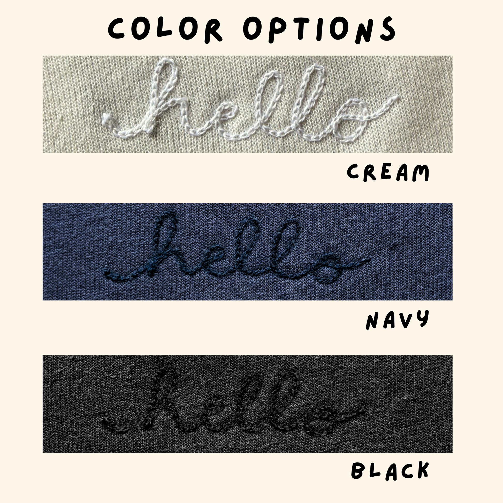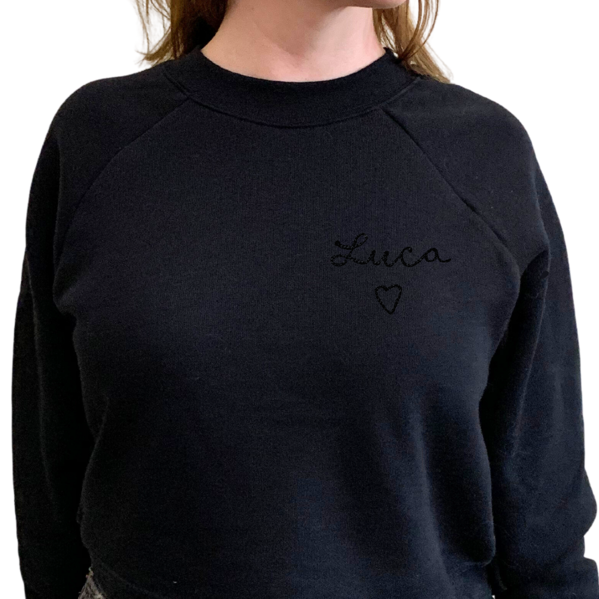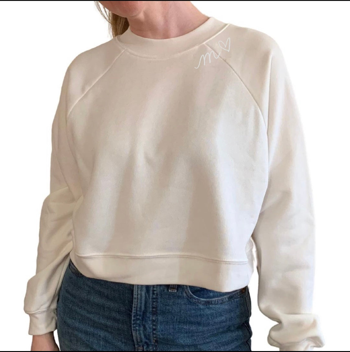 Add a secret message to our perfectly cropped sweatshirts with your choice of monochromatic chainstitch embroidery.